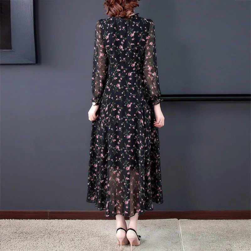 Black floral skirts usually give people an elegant and slightly retro feeling. Its base color is deep black, dotted with flower patterns of different sizes.