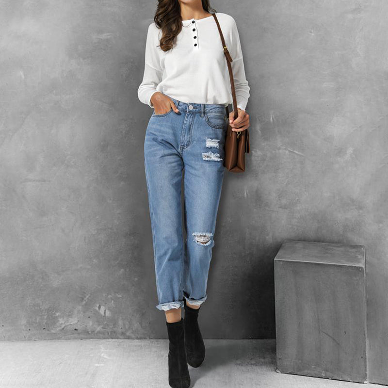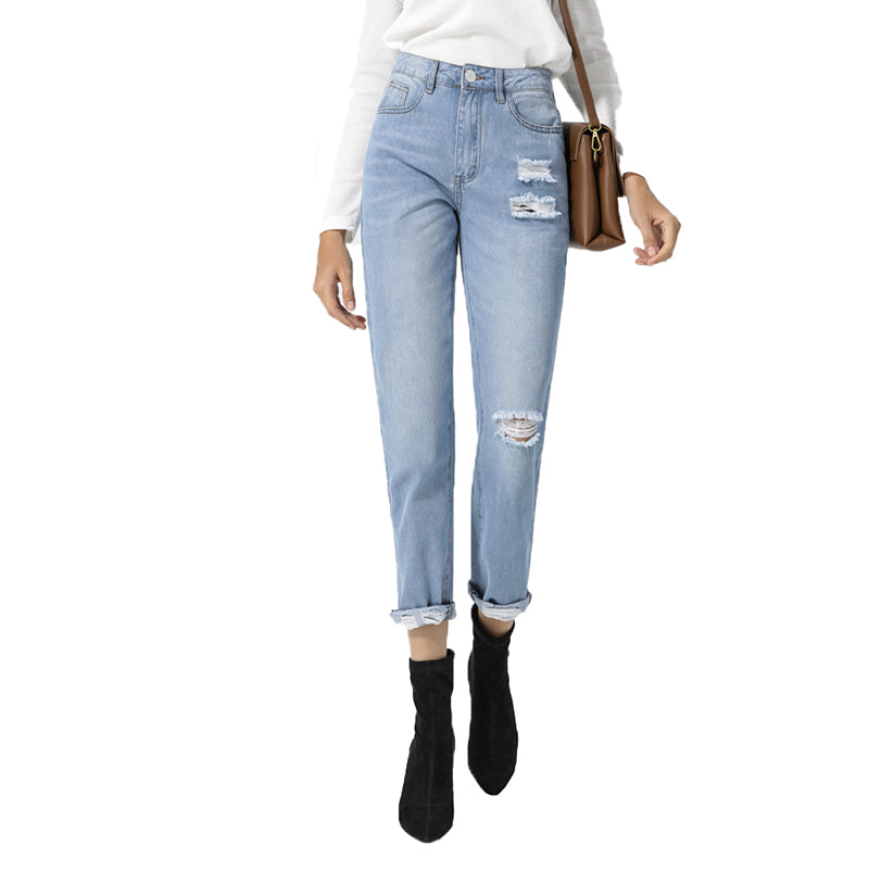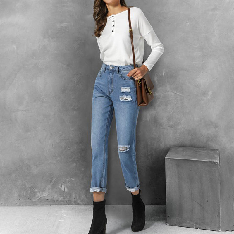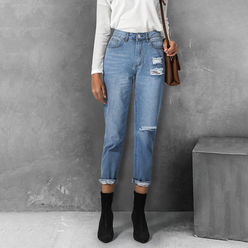 Velveteveningdress – Women’s Jeans Ripped Denim Trousers